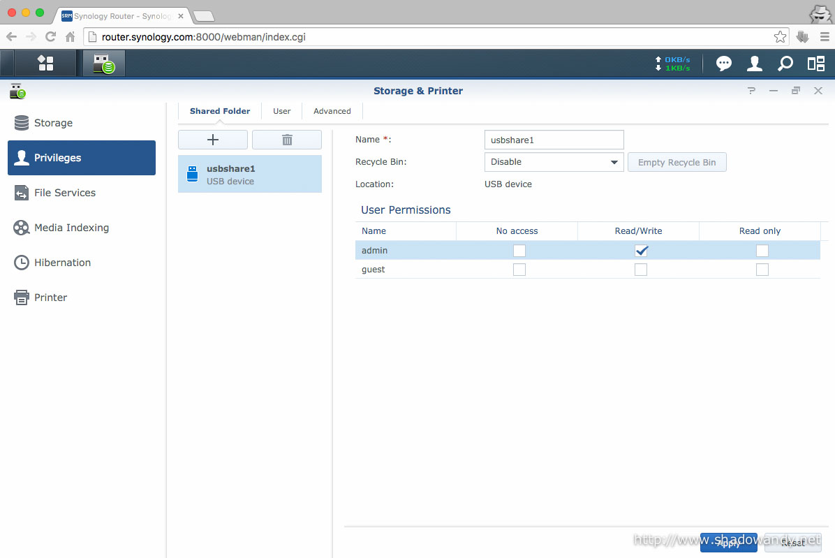 I would expect Synology, with its vast experience in the NAS business, to excel in this department. So let’s take a look at the NAS feature of the Synology RT1900ac.