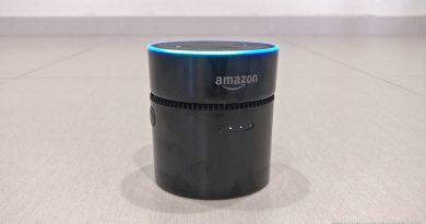 The top face of the Amazon Echo is the same as the Echo Dot. It has got a light ring that reflects the direction it is picking up voice instructions from. When adjusting its volume, the light ring also reflects the volume level. Essentially the light ring gives you visual cue into the stuffs it is doing, for example, thinking (by having a ring of blinking lights) what it should do when it received a voice instruction.