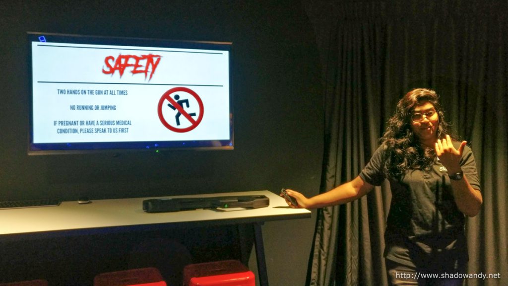 The game master briefing us on the safety aspects that we need to take note of during the VR games.
