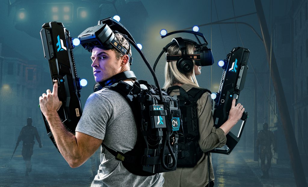 The entire VR gear comprise of the VR backpack, head mounted display, headphones and the rifle.