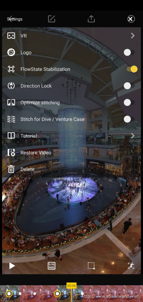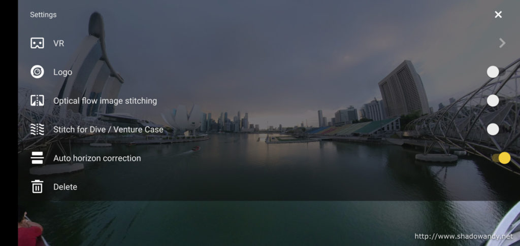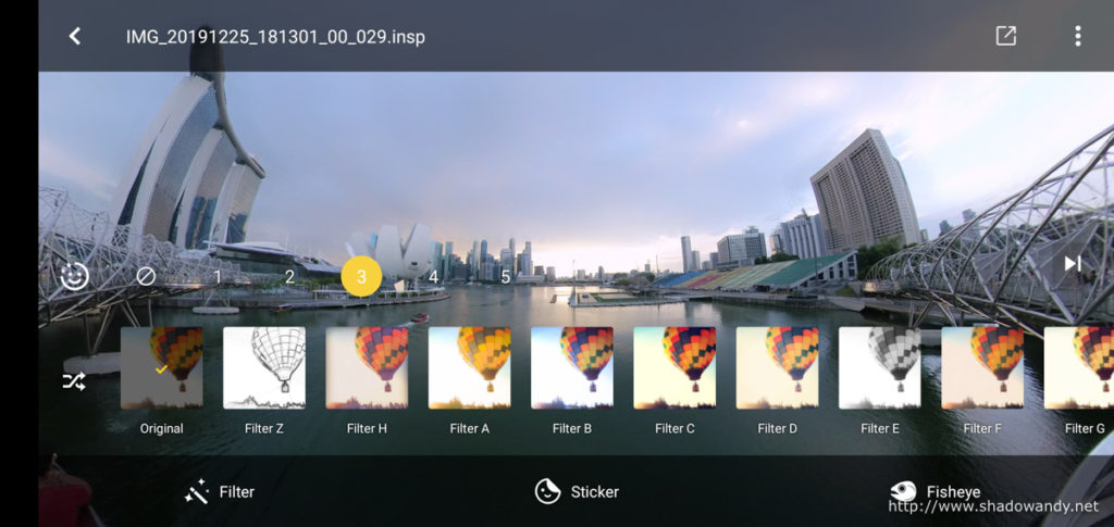 The mobile app is equipped with basic panoramic photo/ video editing tools – from preset/ template portrait filters to trimming of videos, or applying styling to change its feel or even adjusting the playback speed for matrix-bullet-dodging style video.