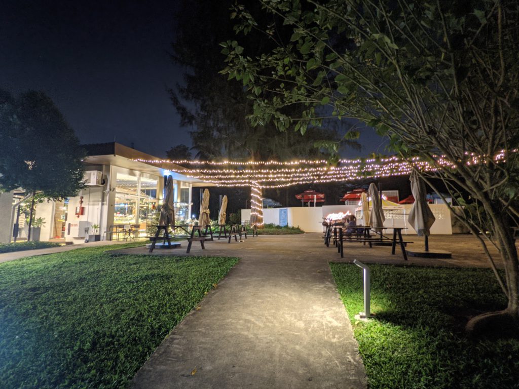 An eatery at night taken on a Pixel 5.