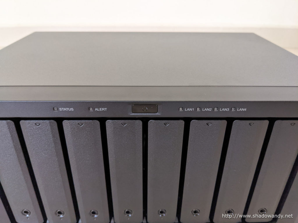 The DS1821+ is matte-black except for its base. The front bezel and back are made of plastic while the rest of the body is made of metal.