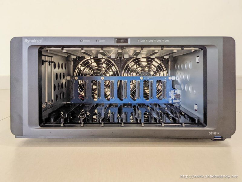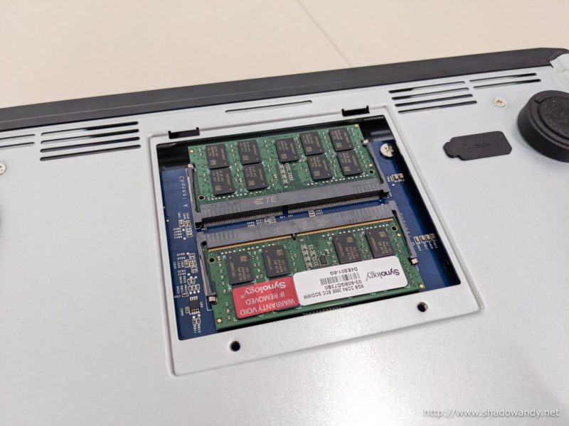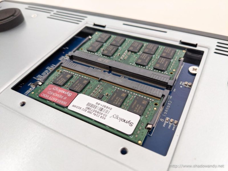 The RAM slots are located at the “belly” of the DS1821+ NAS. The RAM upgrading process is straight-forward which involves a Phillips-head screw driver. Installing the new RAM modules took less than five (5) minutes.