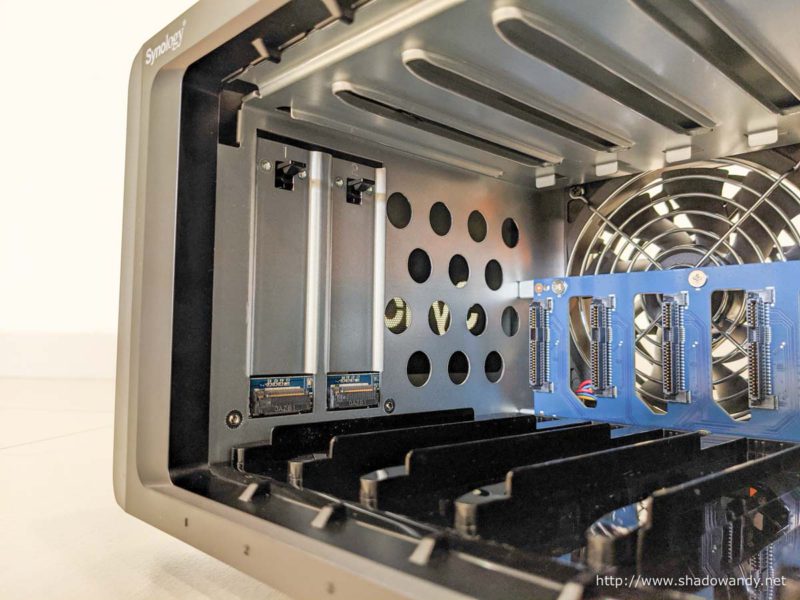 On the left side are two M.2 NVMe drive slots to super-charge the NAS performance.
