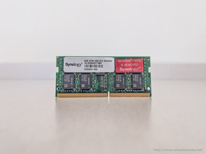 The D4ES01-8G 8GB DDR4 ECC Unbuffered SODIMM is from Synology and compatible with Synology 21-Series NAS arrays, including the DS1821+, DS1621xs+ and DS1621+.